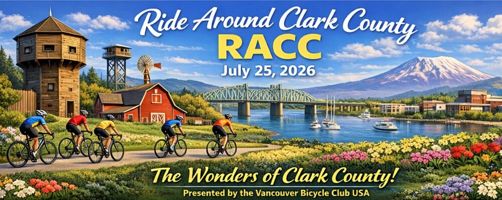 Celebrate the 42nd Ride Around Clark County (RACC) on Saturday, July 25, 2026, starting and finishing at the historic Fort Vancouver! This year’s theme, “See the Wonders of Clark County,” features five brand-new routes, each designed to showcase seven standout local sights. Choose the ride that fits your day: the easygoing 18-mile Family Route, the 34-mile Explorer, the challenging Metric Century, or the epic Century. Want a little grit with your miles? Our 61-mile Adventure/Gravel Route delivers a fun mix of paved and unpaved terrain.